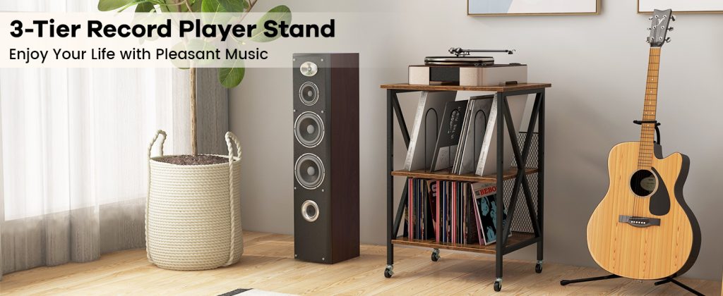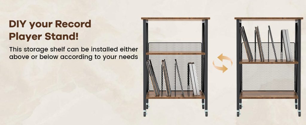 - [Functional Universal Wheels]: The 3-tier record player stand is equipped with 4 universal wheels that are smooth and wear resistant so that you can move it to the desired place easily. What’s more, 2 lockable wheels can keep the turntable stand in position when it is stationary.
